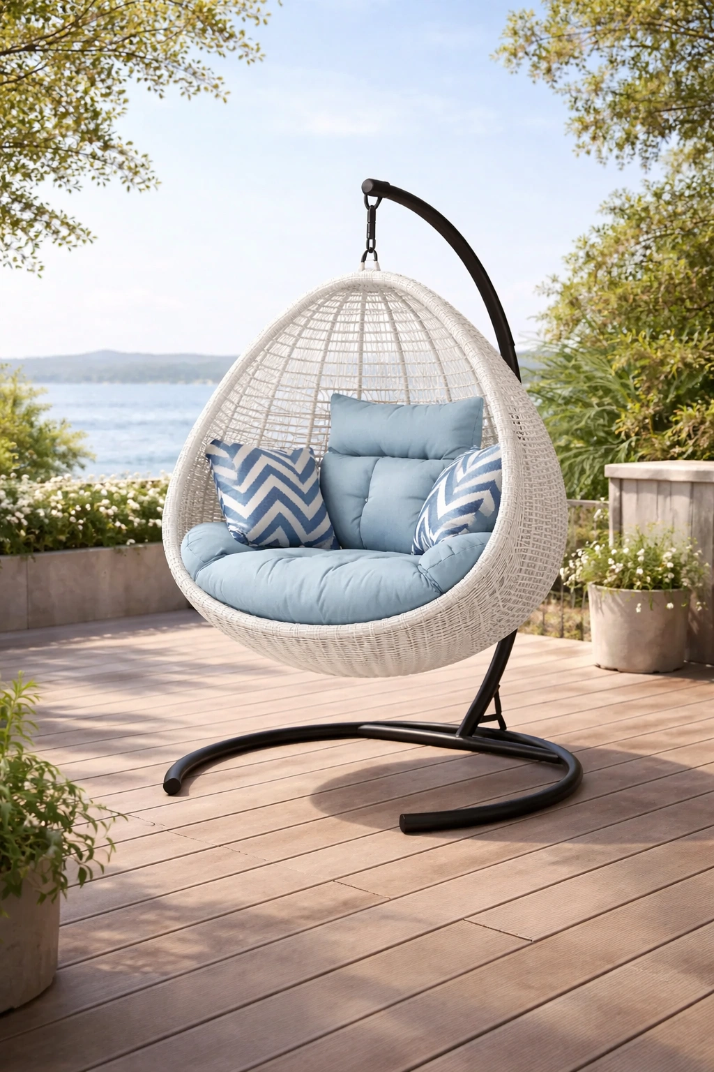 Conjunto de mesa y sillas de jardín de aluminio blanco para 6 personas
