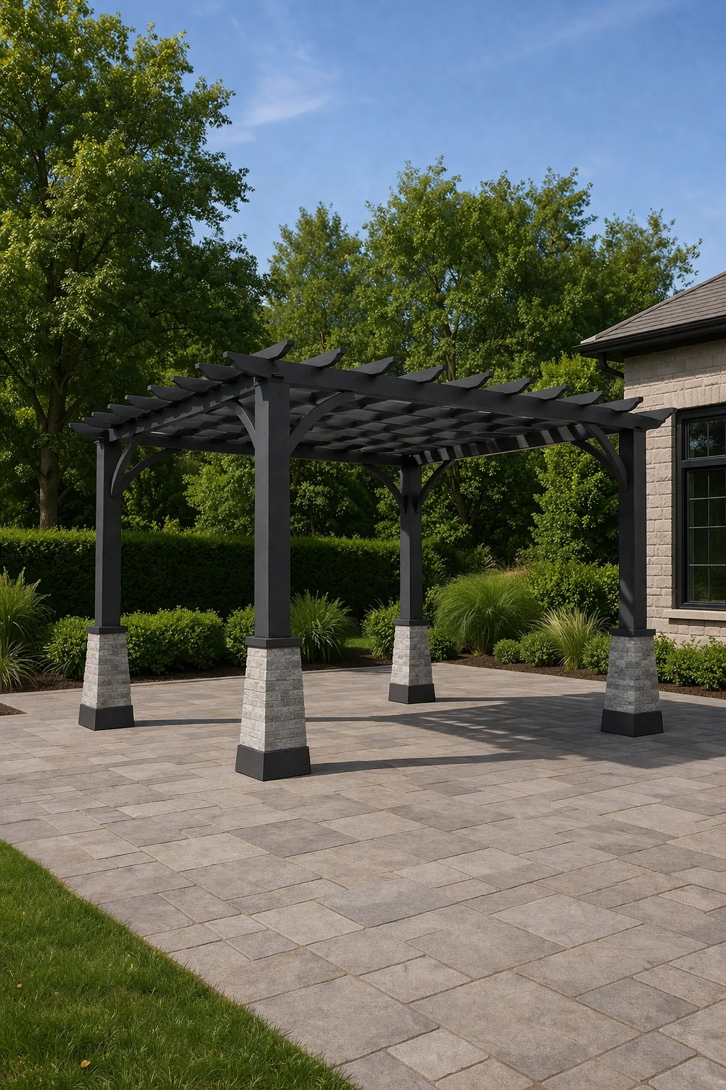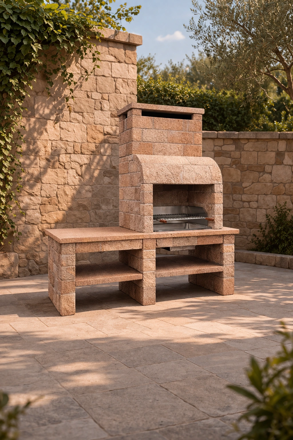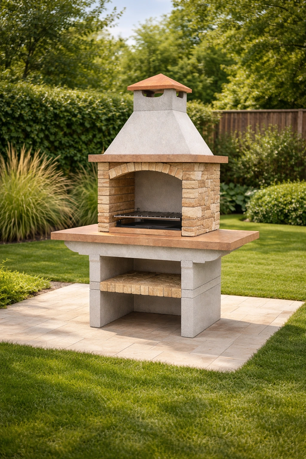 Conjunto de mesa y sillas de comedor exterior con mesa redonda de hormigón y sillas de ratán sintético gris