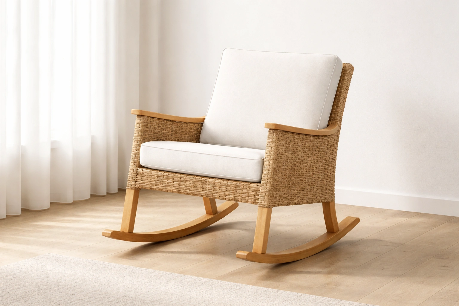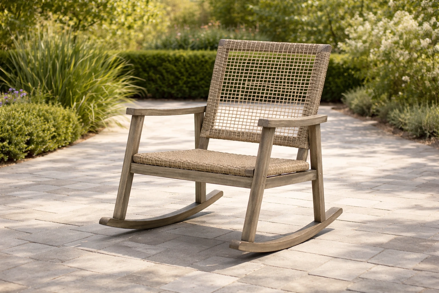 Conjunto de jardín compacto de sillas y mesa de ratán sintético y madera